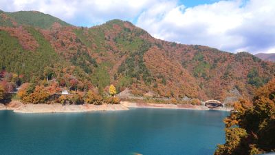 奥多摩湖小河内ダムへの上りも綺麗に色づいています。