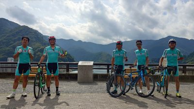 目的地奥多摩湖への上りに突入したところで先程パンクしたメンバーの走りに異変が・・・と思っていたら再度パンクしていました。
