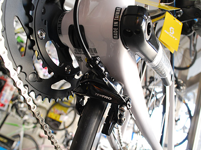 全体的に細身のフレームですが、ダウンチューブからチェーンステーにかけてはボリュームのある作りが特徴です。
